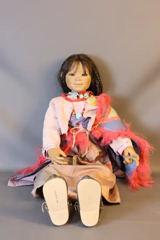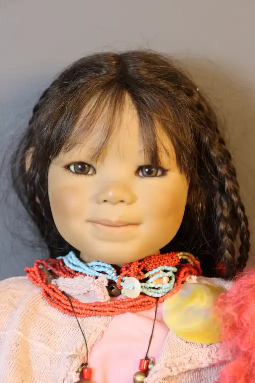 ANNETTE HIMSTEDT. Poupée métisse articulée, yeux fixes avec cils, bouche fermée.