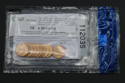 Sachet de 10 pièces de 20 Francs or République Française sous scellé numéroté 112035