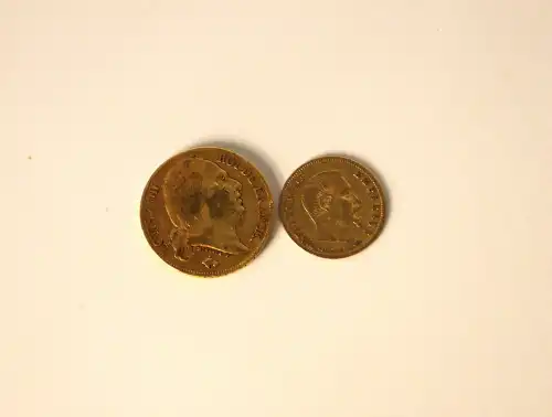 Pièce de 20 Francs or Louis XVIII de 1819 Paris et une pièce de 5 Francs or Napoléon III et 1859.