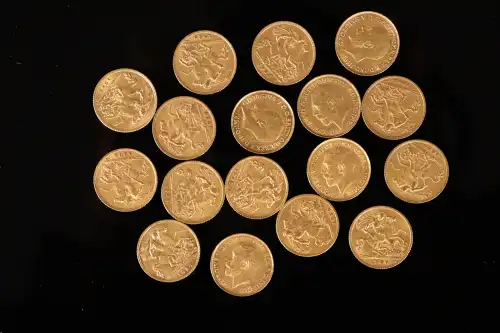 Lot de 17 pièces de demi-souverain or de 1925 (5) et 1926 (12)