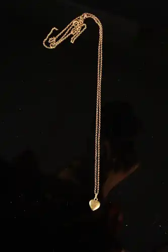 Pendentif coeur et chaîne (accidentée) en or jaune 18 K (750). Poids : 8.29 g