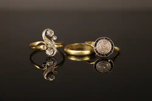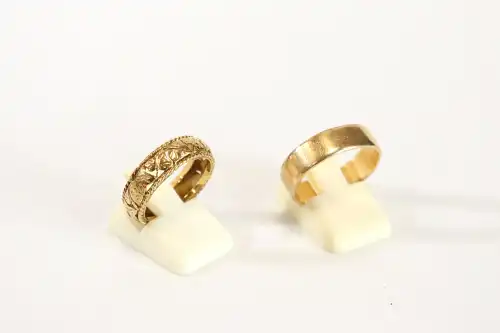 Lot en or jaune 18 K (750) : alliance et de deux débris de bagues. Poids : 6.35 g