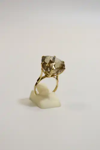 Bague en or jaune 18K (750) ornée d'une citrine ronde calibrant environ 17 carats, en serti 6 griffes. TDD 52. Poids brut : 7 g