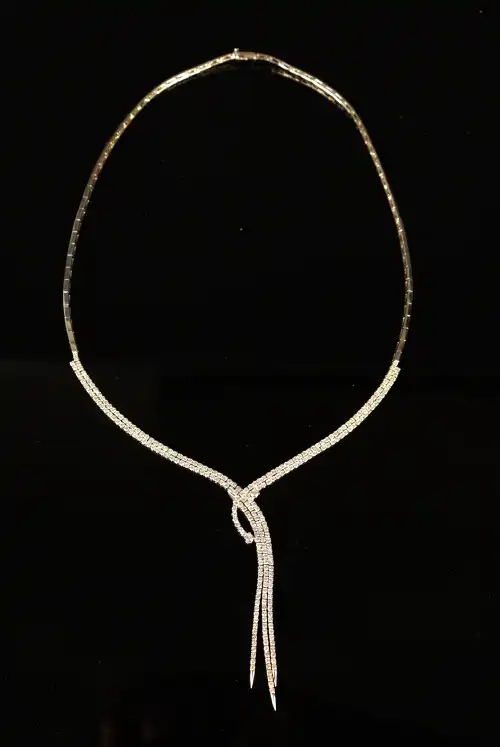 Collier draperie en or gris 18 K (750) sertie de lignes de diamants de taille brillant. Poids brut : 26 g