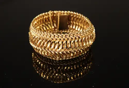Large bracelet à double maille américaine en or jaune 18 K (750). Poinçon tête d'aigle. Poids : 65.66 g