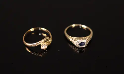Lot de deux bagues en or jaune 18 K (750), sertie des petites pierres. Poids brut : 3.9 g