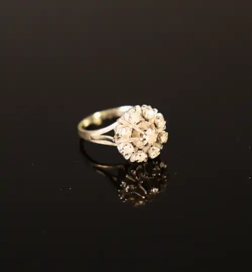 Bague marguerite en or gris 18 K (750), sertie de pierres blanches. Poids brut : 4.6 g