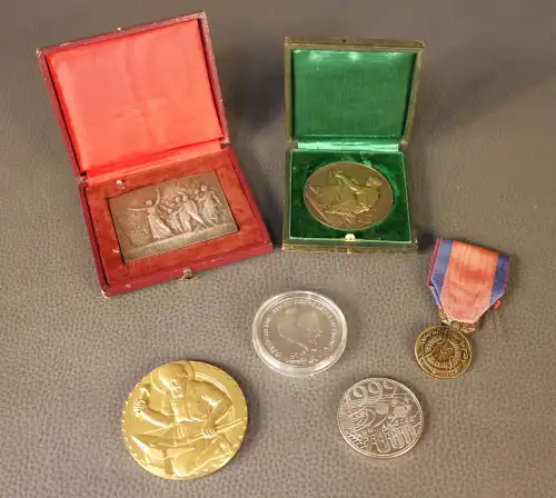 Deux médailles en or 18K (750). Poinçon tête d'aigle. Poids : 6.8 g