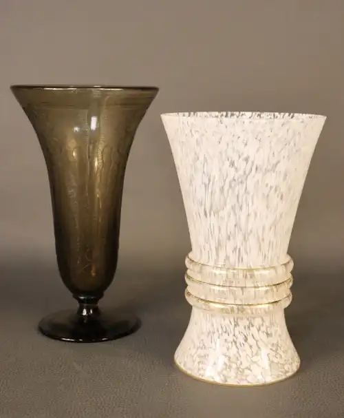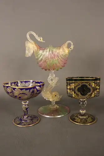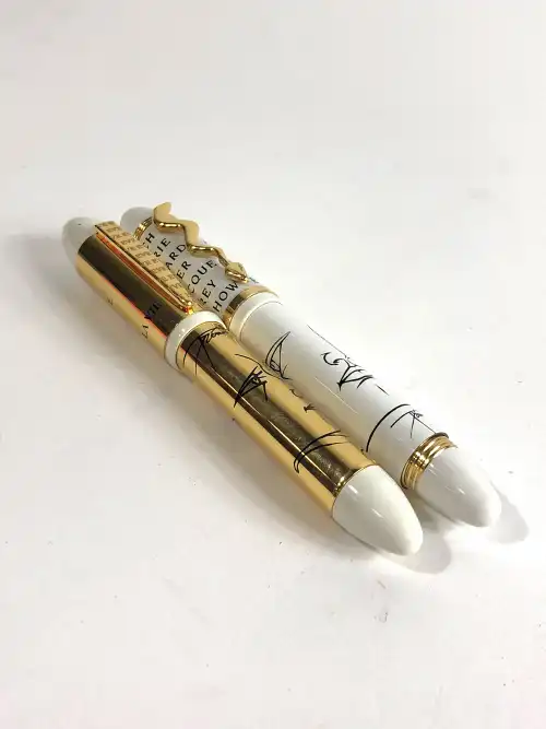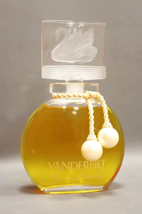 VANDERBILT. Flacon factice de la collection « Gloria Vanderbilt » (25cm) avec bouchon gravé d’un cygne et accessoire à perles.