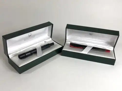 On joint deux boîtes de la marque en carton.