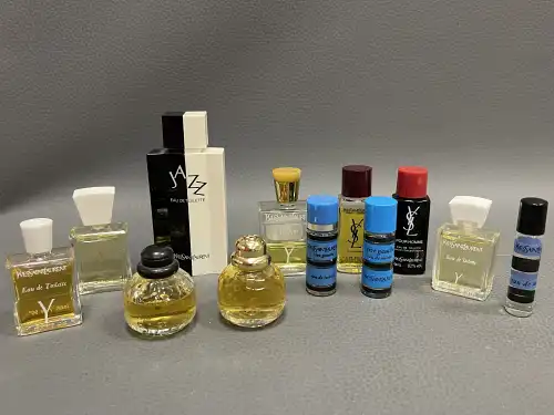 Yves SAINT LAURENT. Lot de douze miniatures comprenant "Y", "Rive gauche" dont un vide, "Jazz", "Paris", "YSL pour homme". De 10 ml à 3 ml.
