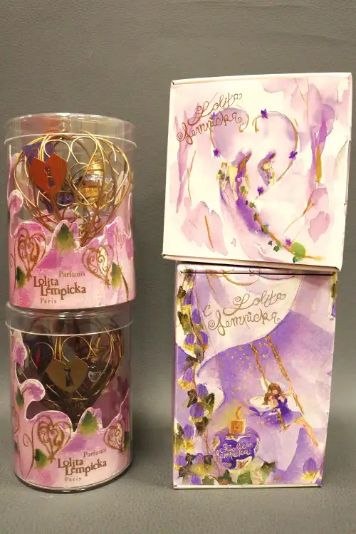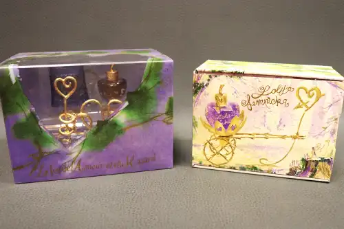 LOLITA LEMPICKA. Lot de deux coffrets de parfum comprenant modèle Calèche miniature 5ml et modèle Le Jeu de l'Amour et du Hasard contenant "Lolita Lempicka" et "Lolita Lempicka au Masculin" 5ml. Neuf