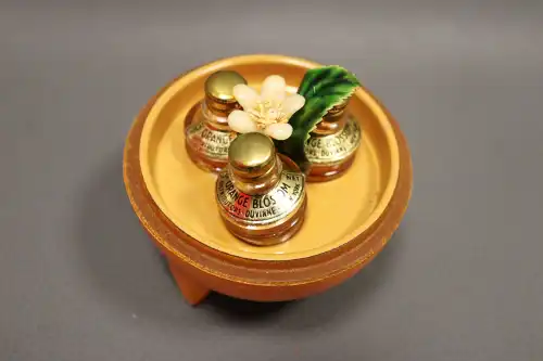 DUVINNE, New York. Orange blossom. Trois flacons miniatures de parfum dans leur boîte d'origine formant une orange. 6 ml chacun
