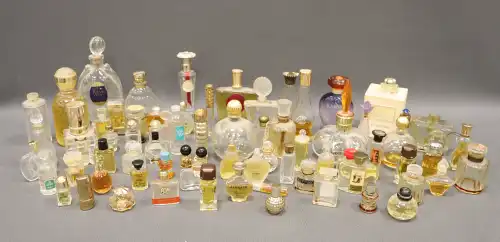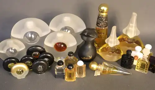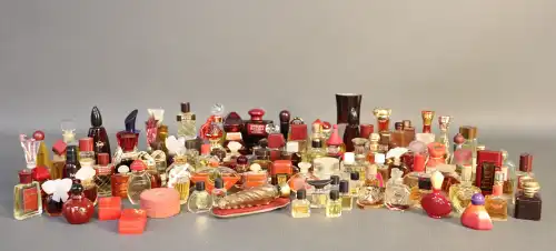 Ensemble de flacons de parfums miniatures dont VALENTINO, GUCCI , BALMAIN, UNRAGO, MOLINARD, ROCHAS, GUY LAROCHE, AUBUSSON, SERGIO SOLDANO, FABERGE, VAN CLEEF & ARPEL, LEONARD, GIANI VERSACE, REVILLON, SLAVA ZAITSEV, SABRINA, ROSE CARDIN, BALENCIAGA, CHRISTIAN DIOR, THIERRY MUGLER, CASSINI, WALLIS, LALIQUE.