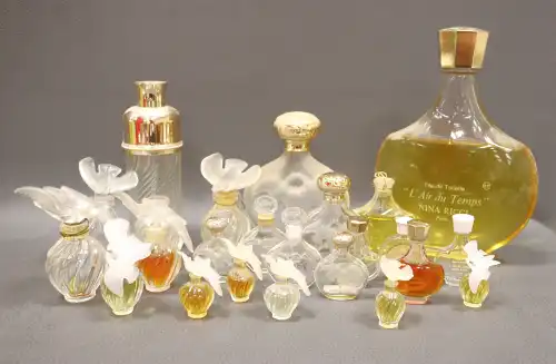 NINA RICCI. Ensemble de flacons dont les collections « Deci-Delà », « Les belles de Ricci », « Caprices », « Farouche », « Le Paradis de Nina » et « Cœur joie ».