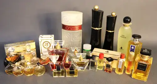 Ensemble de flacons de parfum de 7ml à 200ml dont - LANCOME. collection "O", "Poème", "Trésors" (dont un coffret), "Miracle", "Magie noire", coffret découverte de miniatures ;