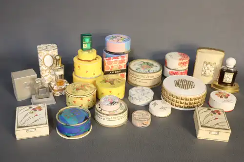 Ensemble de boîtes de poudre et boîtes de parfums dont "Sèvres" de SAUZE, "Madame Rochas" de ROCHAS, CARON, ELIZABETH ARDEN, HOUBIGANT, FLEURS DE PARIS, CREME SIMON, GRENOVILLE...
