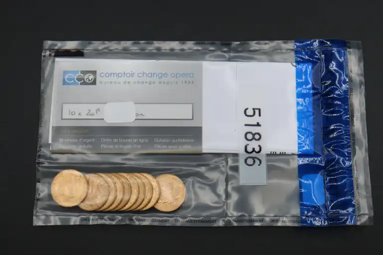 Sachet de 10 pièces de 20 Francs or République Française sous scellé numéroté 51836