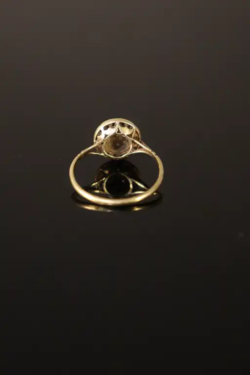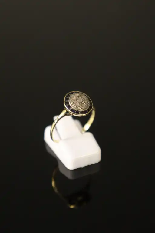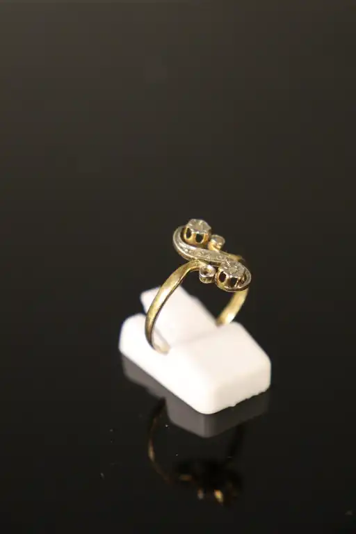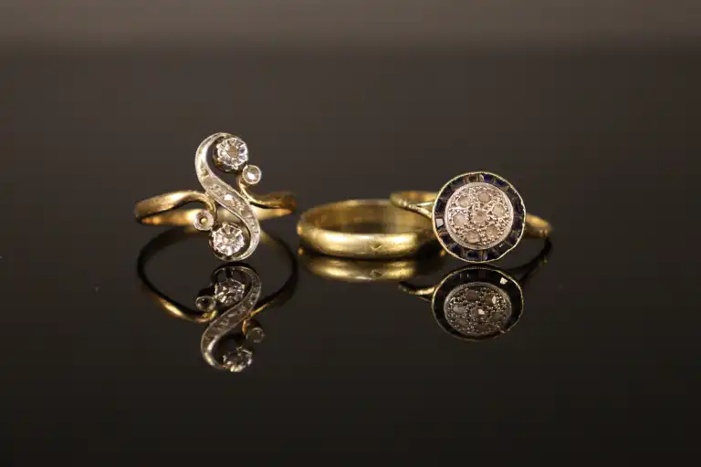 Lot de deux bagues serties de petites pierres et une alliance en or jaune 18 K (750). Poinçons tête d'aigle. Poids brut : 6.81 g