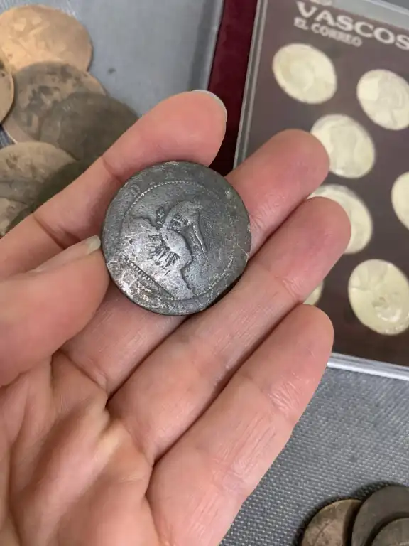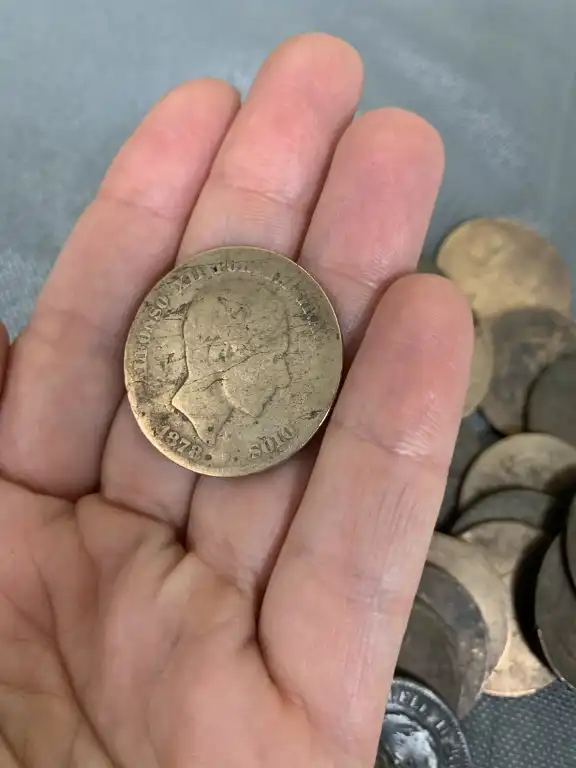Lot de pièces diverses dont :23 pièces en cuivre dont Alfonso Diaz Cent (1878-1879), très effacées ; 14 pièces cuivre 1870 Espagne (usées) ; 14 pièces en argent 925/1000 El Correo de la collection Vascos Ilustres