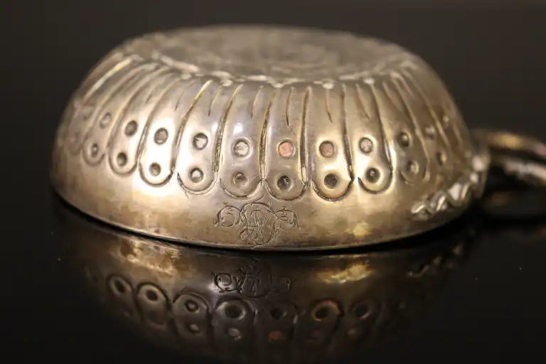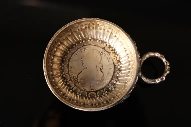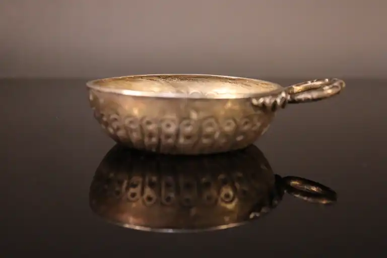Taste vin en argent 800/1000, le fond orné d'un écu d'argent Louis XVI. Poids : 108 g