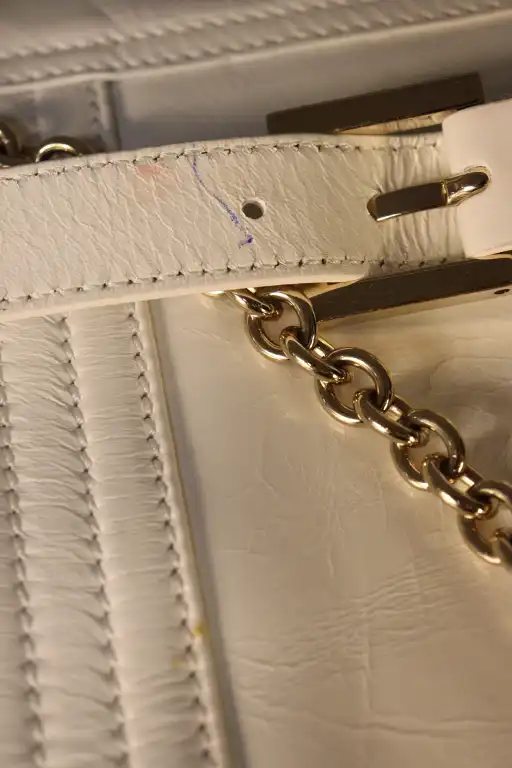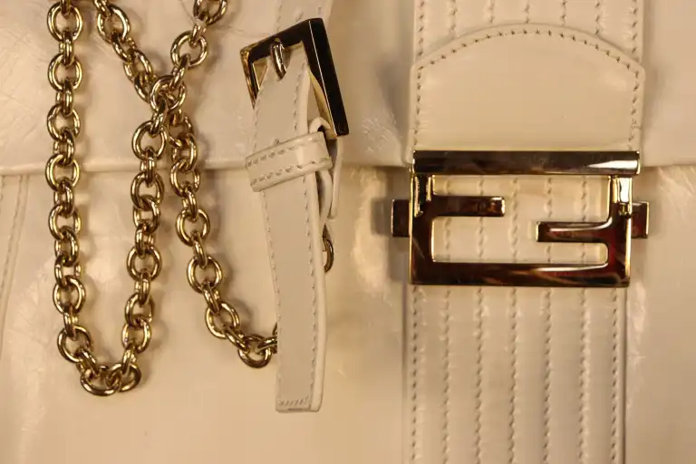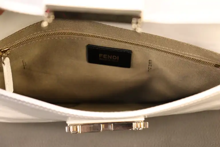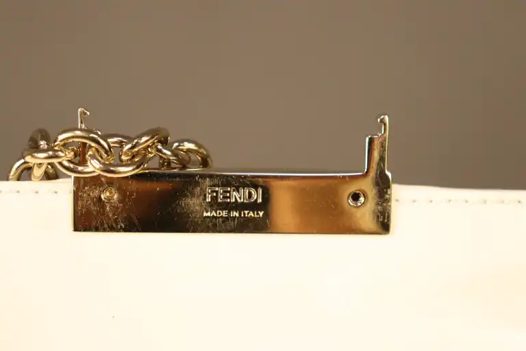 FENDI. Sac à main à bandoulière en cuir blanc à rabat de forme trapèze.