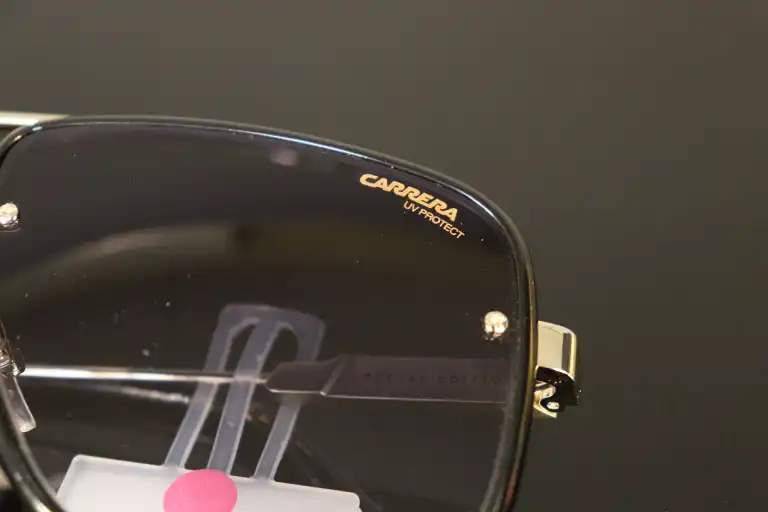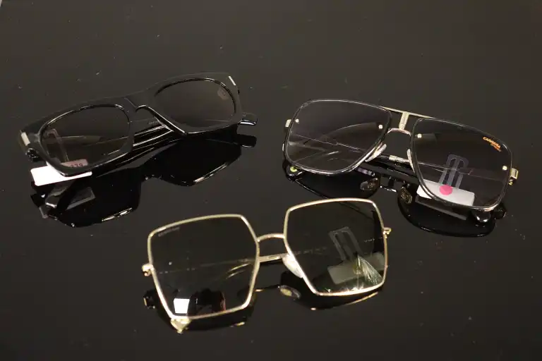 Lot de trois paires de lunettes de soleil de marque CARRERA à monture noire et métal, BURBERRY à monture métal et SAINT LAURENT à monture noire. Etat neuf.
