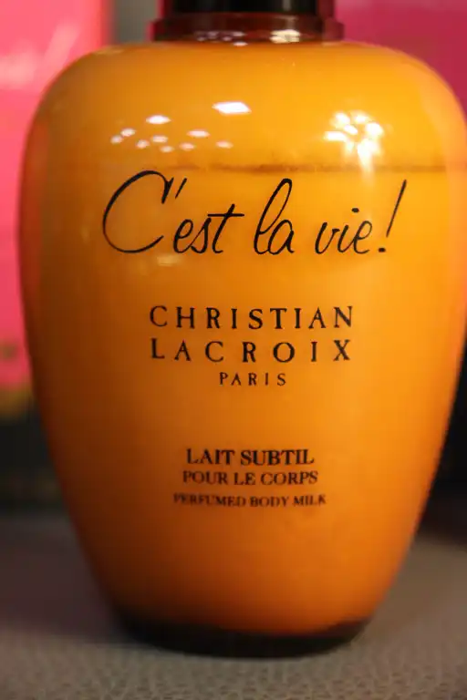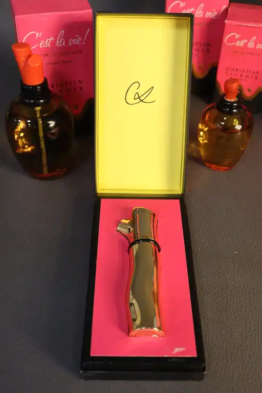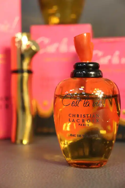 CHRISTIAN LACROIX. Ensemble de sept flacons factices collection "C'est la vie !" sous boite, comprenant : - trois Eau de parfum dont un vaporisateur (50ml et 100ml) ;
