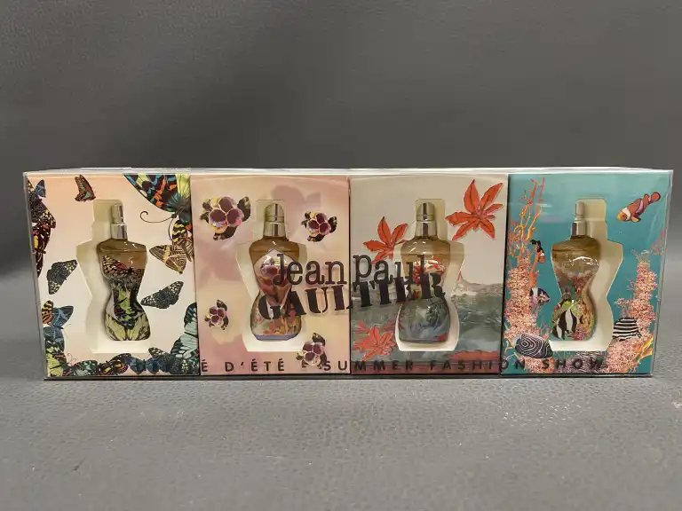Jean Paul GAULTIER. Lot de trois coffrets comprenant "Classique", "Le Mâle" et "Fragile" dont : Le Défilé d'été, Collection d'été et La Galerie Gaultier. 3,5 ml.