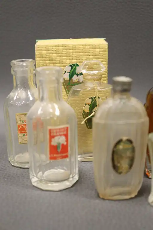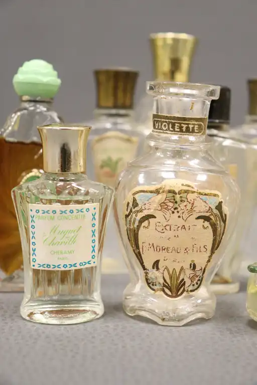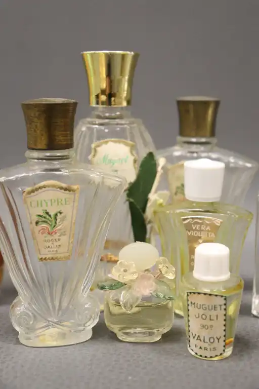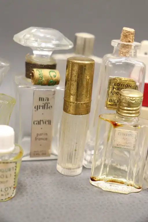 Lot de dix-neuf flacons de parfum et miniatures vintages comprenant : - BOURJOIS, "Soir de Paris" dans sa boîte ; - F. MOREAU & FILS, "Extrait de violette" (sans bouchon, vide) ; - "Con'regho di fiori" (?) (plein) ; - MONSAVON, "Chypre" ; - L.T PIVER, "Chypre", "Floramye" et "Oeillet frangé" ; - ROGER & GALLET, deux " Chypre", "Vera Violetta" ; etc. ... On joint une boîte "Robe d'un soir" de CARVEN, une boîte de cartes à jouer miniatures, FRAGONARD miniature de maquillage.