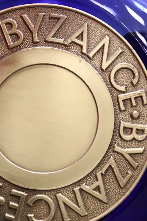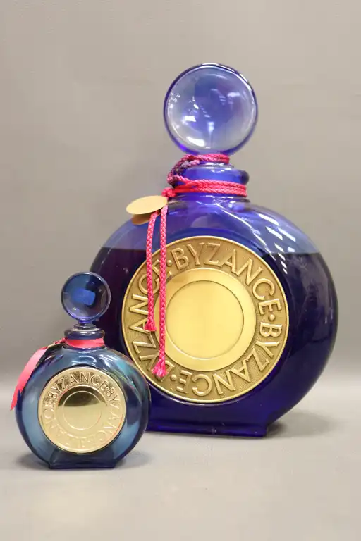 ROCHAS. Ensemble de deux flacons de la collection « Byzance » dont une eau de parfum (100ml ; vide) et un factice (36cm).