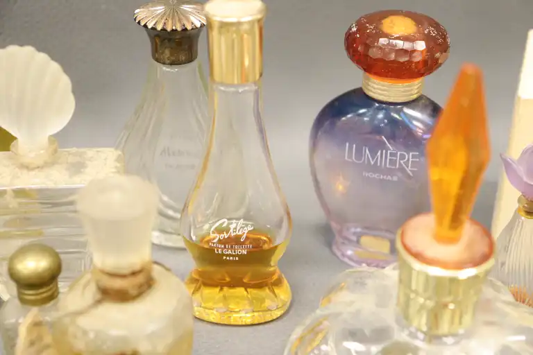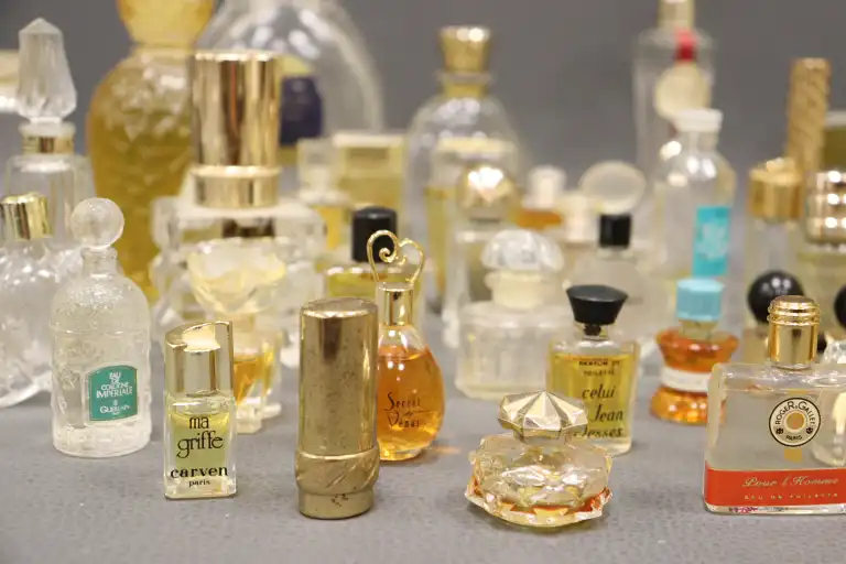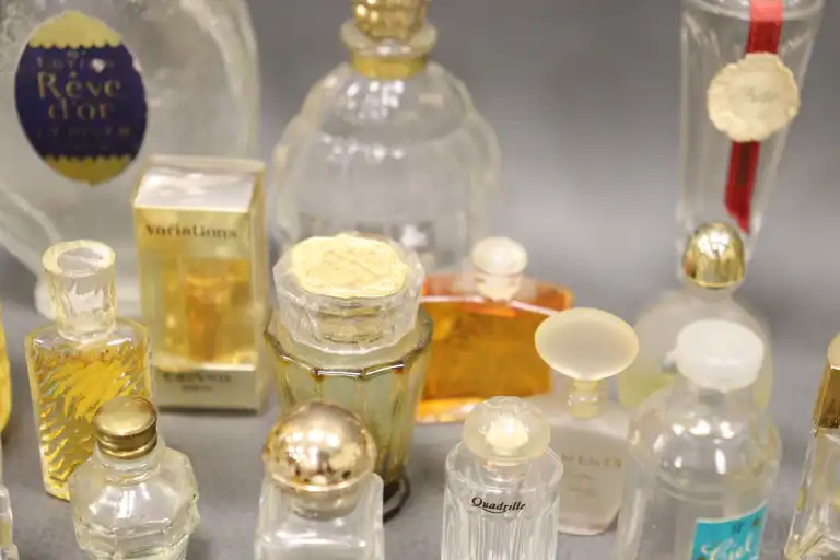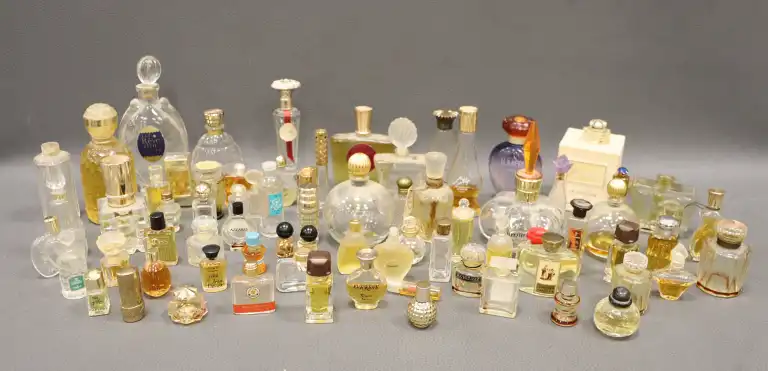 Ensemble de flacons dont ROCHAS, AVON, HERMES, DANA, WEIL, LT. PIVER, ELISABETH ARDEN, LE GALION, BALENCIAGA, YARDLEY.