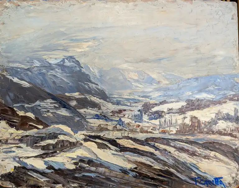 Francis CARIFFA (1890-1975). Vallée sous la neige, Savoie. Huile sur panneau, signée en bas à droite. 33 x 41 cm