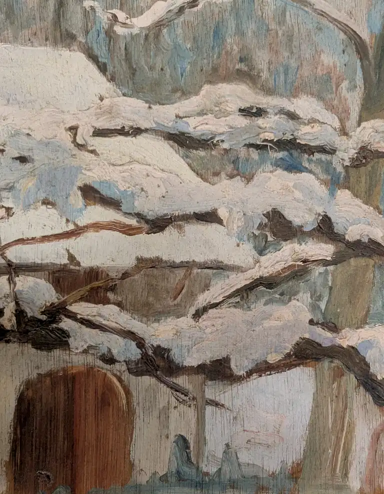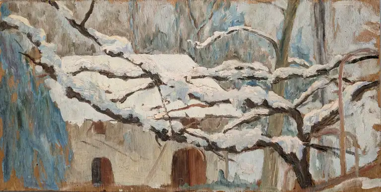 Francis CARIFFA (1890-1975). Ferme et arbres sous la neige. Huile sur panneau. Non signée. 38 x 46 Provenance : fille de l'artiste Tonia Cariffa.