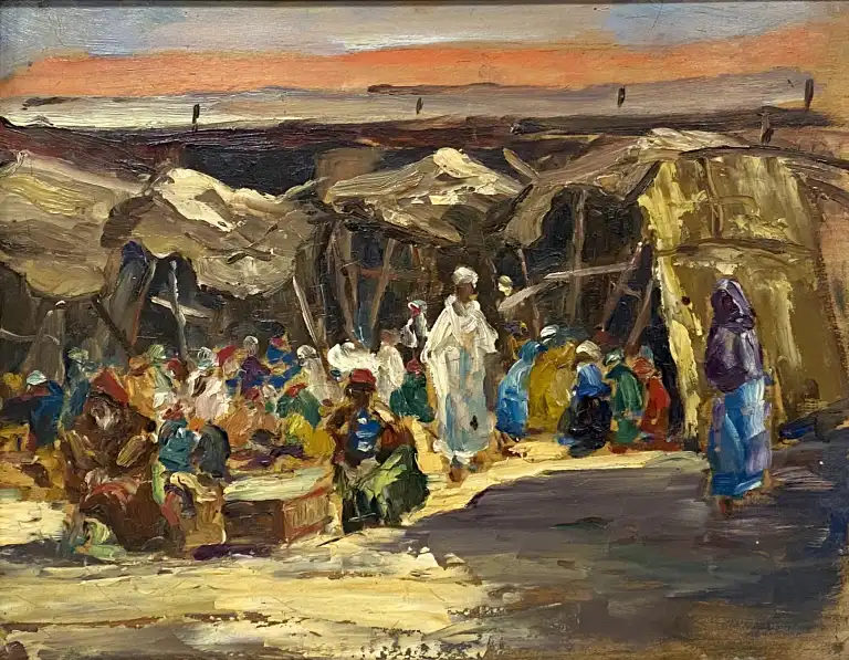 Francis CARIFFA (1890-1975). Souk à Marrakech. Huile sur panneau. Non signée. 27 x 34 cm