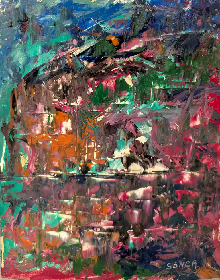 Sonca CARIFFA (1897-1989). Compositions abstraites. Quatre dessins en technique mixte, signés. 32 x 24 cm (2), 23 x 19 cm, 40 x 31 cm