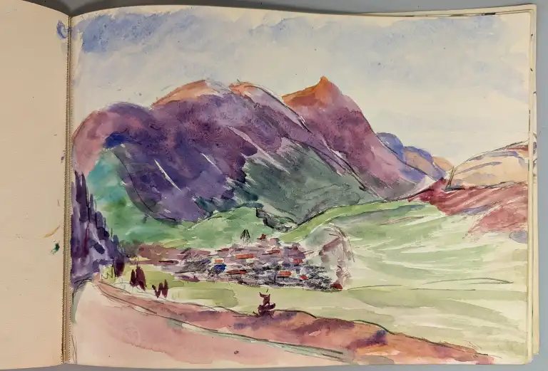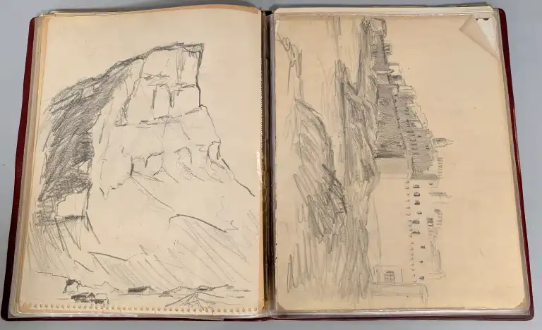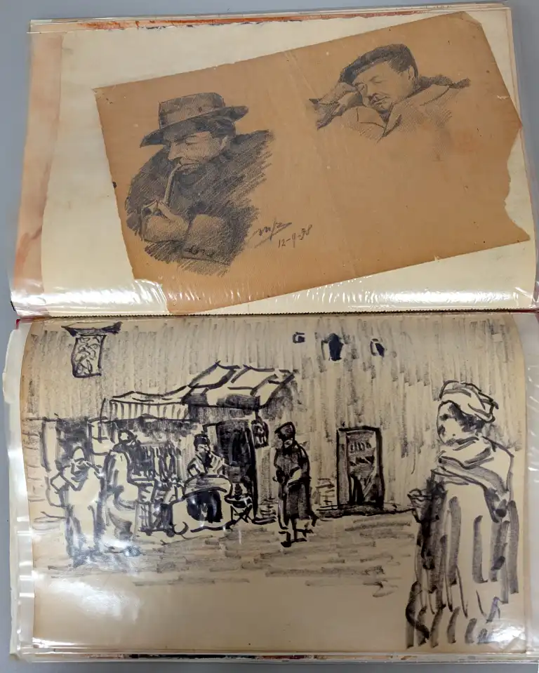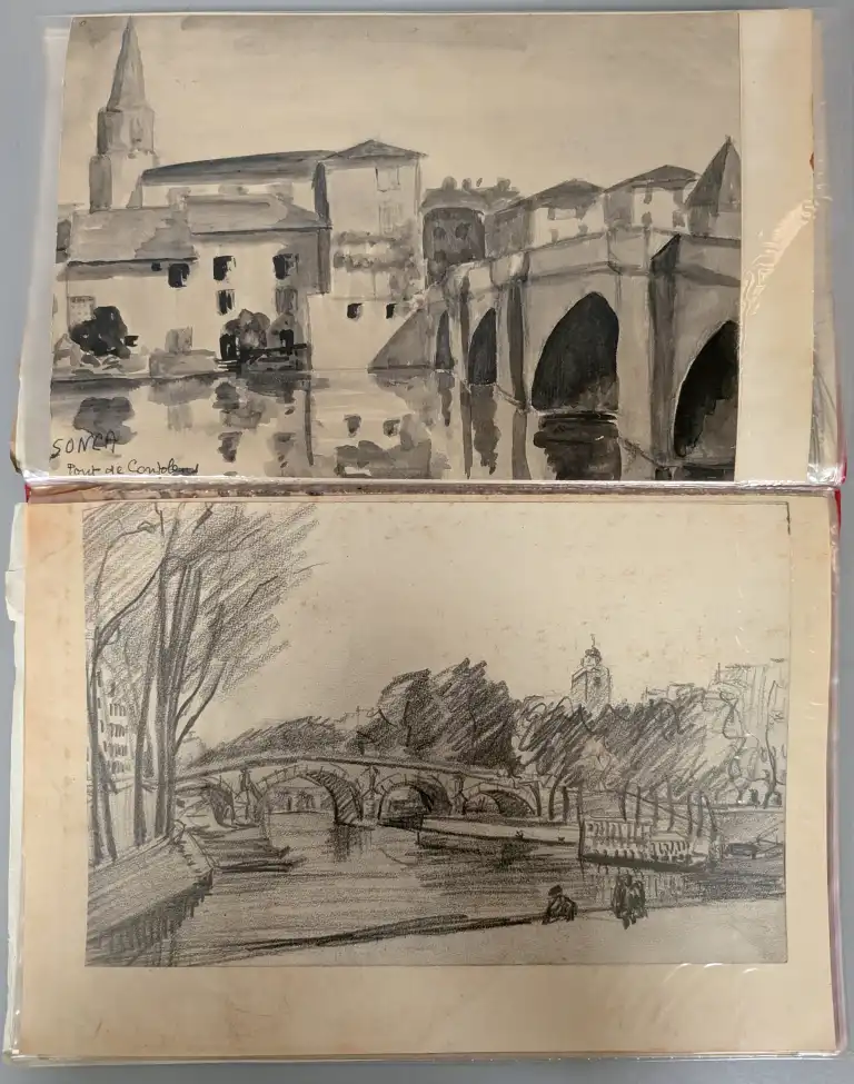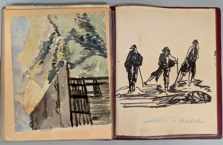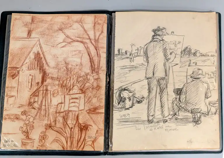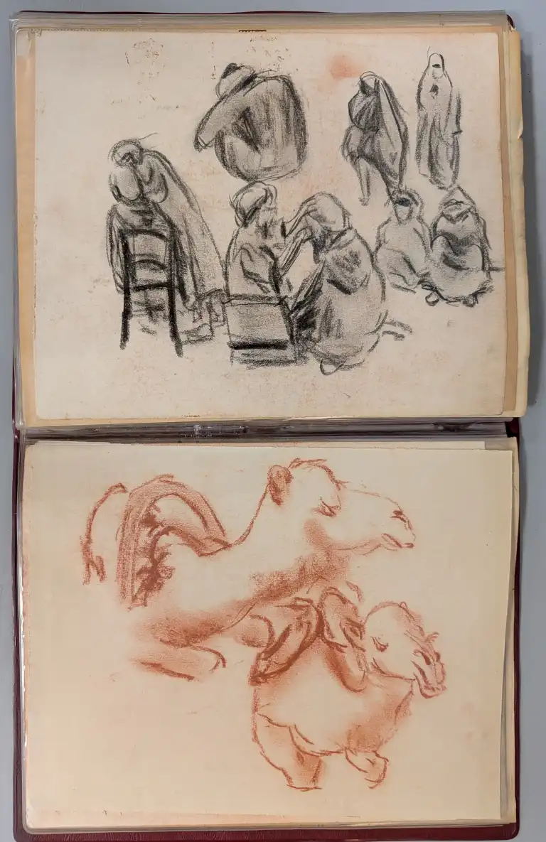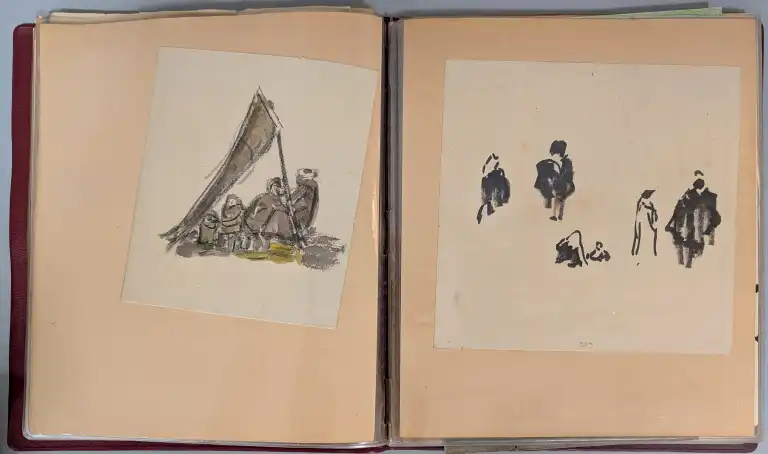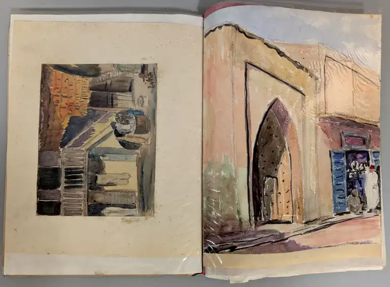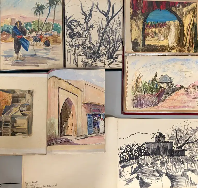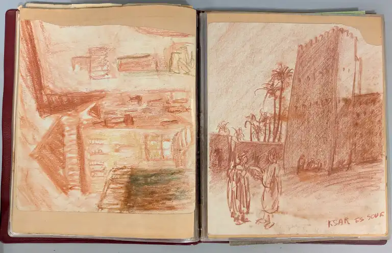 Sonca CARIFFA (1897-1989). Quatre carnets de croquis comprenant environs 65 dessins et études, sur différents thèmes : personnages, Maroc, paysages, architecture, etc.