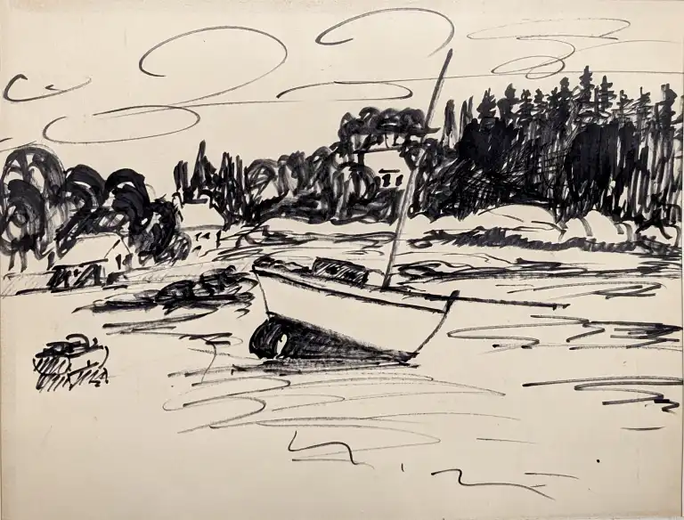 Sonca CARIFFA (1897-1989). Bretagne, Ploumanac'h. Trois dessins au feutre, titrés, dont deux signés. 23 x 30 cm