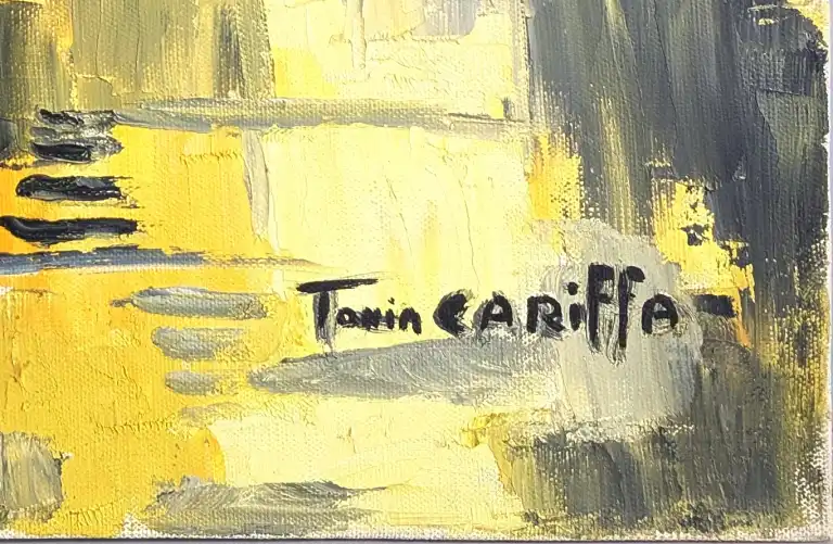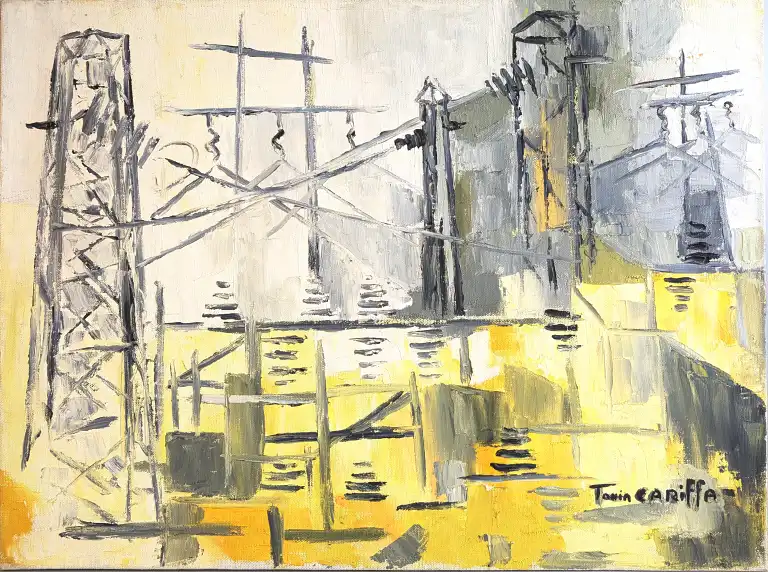 Tonia CARIFFA (1924-2025). Vue d'usine. Huile sur toile, signée en bas à droite. 46 x 61 cm