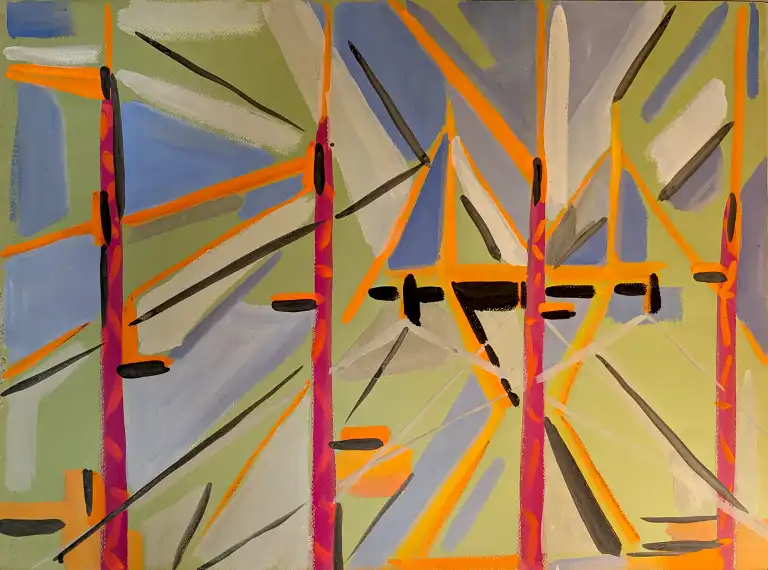 Tonia CARIFFA (1924-2025). Pylônes. Dessin à la gouache. 50 x 65 cm