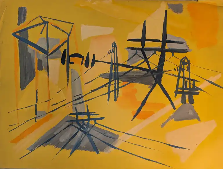 Tonia CARIFFA (1924-2025). Pylônes. Dessin à la gouache. 50 x 65 cm
