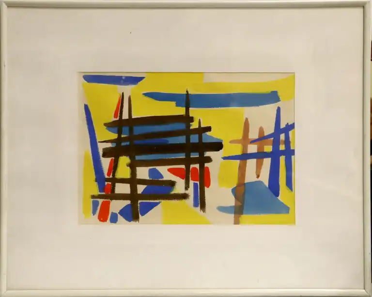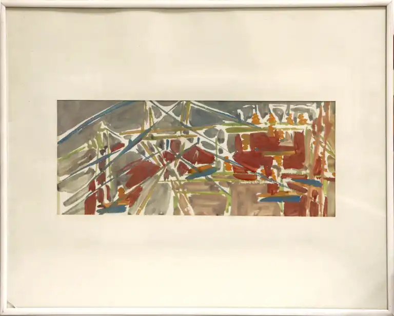 Tonia CARIFFA (1924-2025). Abstractions industrielles. Deux dessins gouache et aquarelle. 15 x 36 cm, 22 x 30 cm