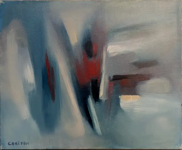 Tonia CARIFFA (1924-2025). Composition abstraite. Huile sur toile, signée en bas à gauche. 38 x 46 cm