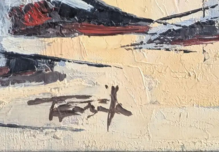 Tonia CARIFFA (1924-2025). Composition abstraite. Huile sur toile, signée en bas à droite. 38 x 46 cm