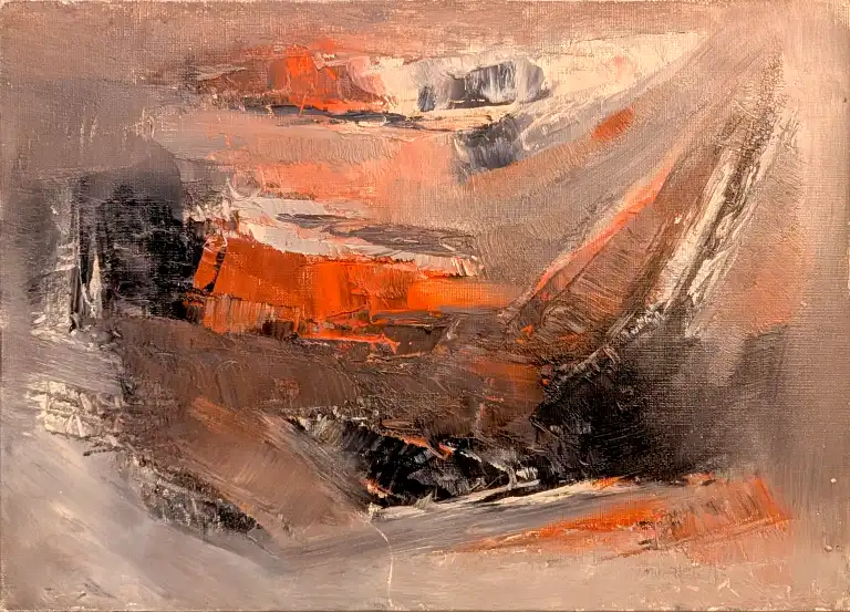 Tonia CARIFFA (1924-2025). Composition abstraite. Huile sur panneau. 24 x 33 cm