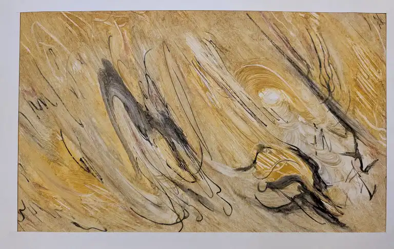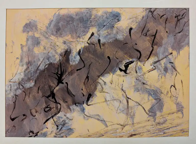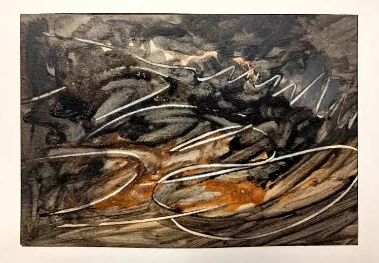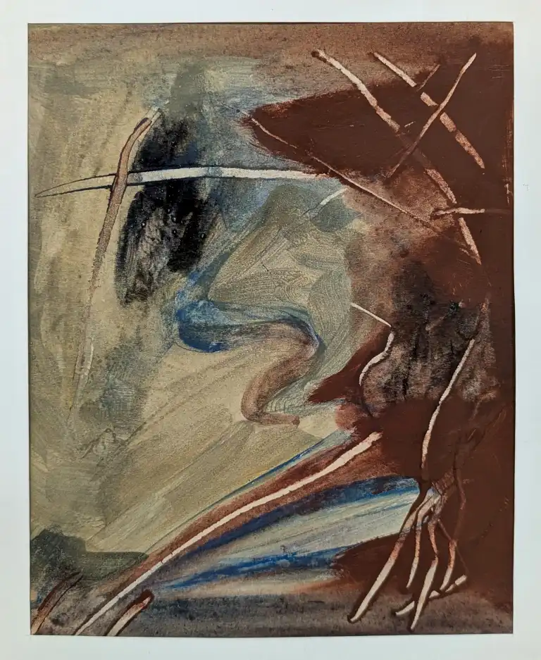 Tonia CARIFFA (1924-2025). Compositions abstraites. Six gouaches avec technique de grattage, dont une signée. 36 x 27 cm, 19 x 28 cm (2), 18 x 25 cm, 19 x 32 cm, 23 x 18 cm