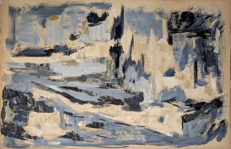 Tonia CARIFFA (1924-2025). Paysage de montagne. Huile sur papier. 70 x 104 cm