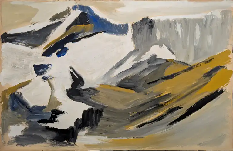 Tonia CARIFFA (1924-2025). Paysage de montagne. Dessin à l'huile sur papier. 70 x 104 cm.