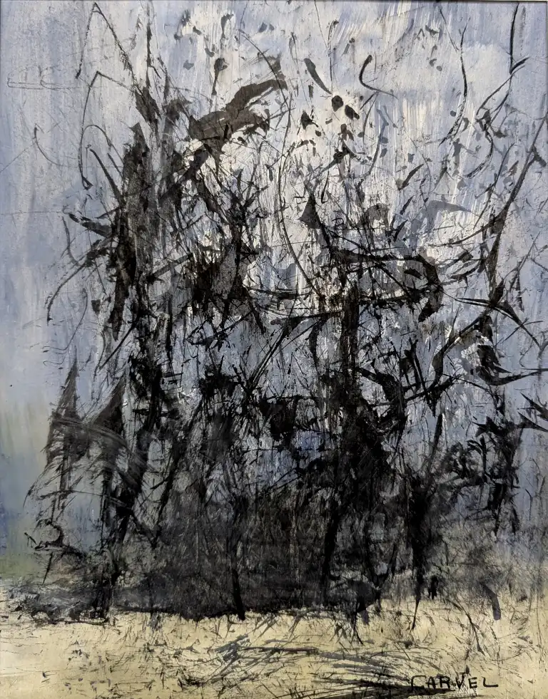 Tonia CARIFFA (1924-2025), signé CARVEL. Composition abstraite. Gouache, signée en bas à droite. 22 x 17 cm