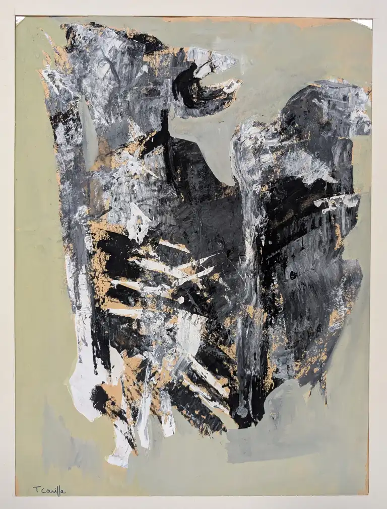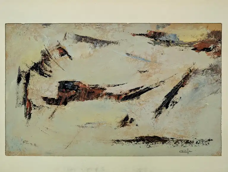 Tonia CARIFFA (1924-2025). Compositions abstraites. Deux techniques mixtes sur papier, signées en bas à droite et à gauche. 23 x 38 cm, 37 x 27 cm